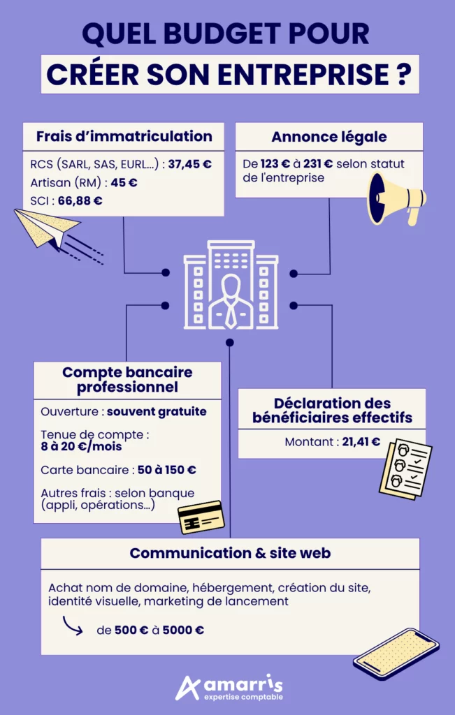 - les frais administratifs (immatriculation, statuts, annonce légale) ;